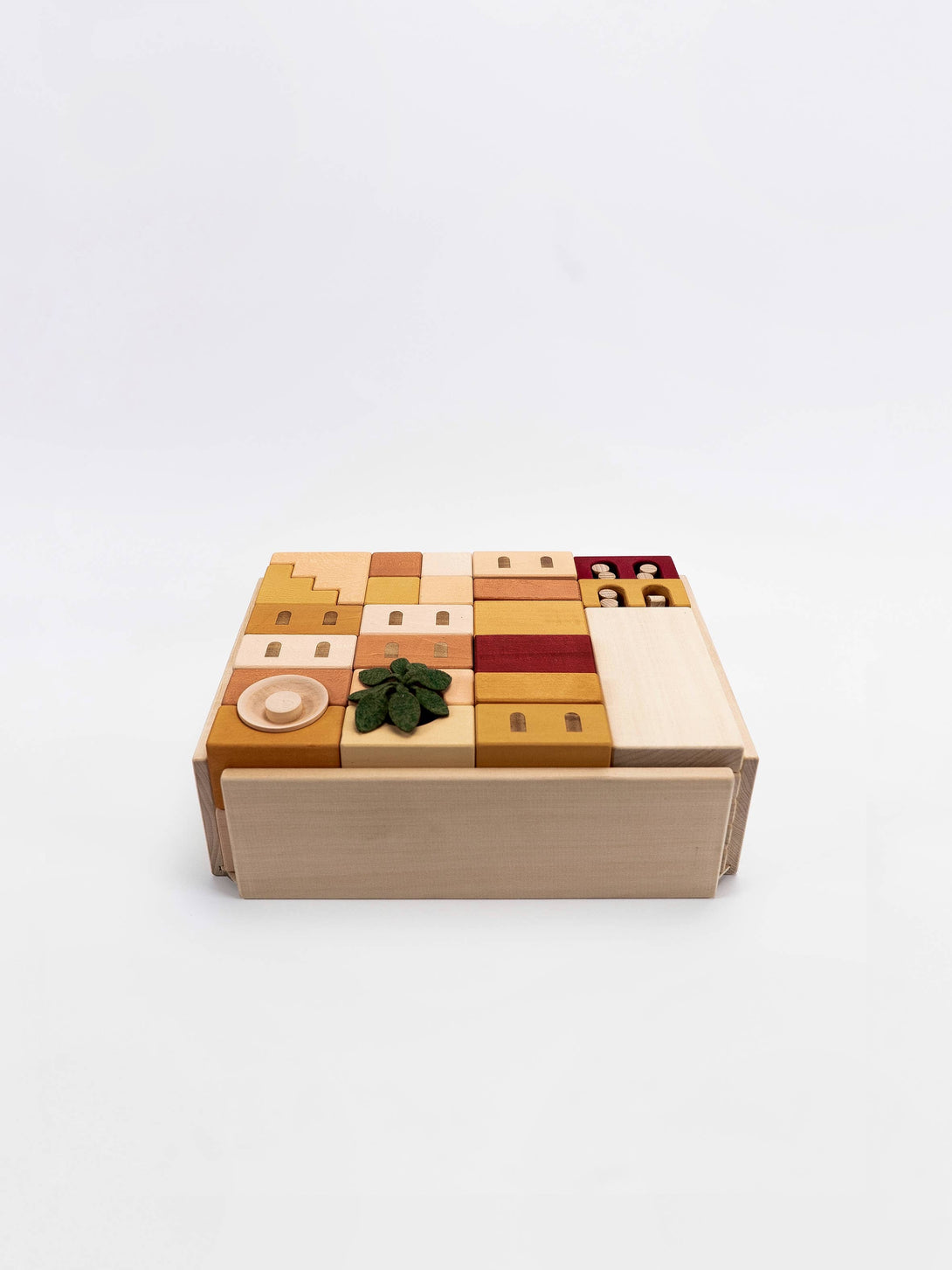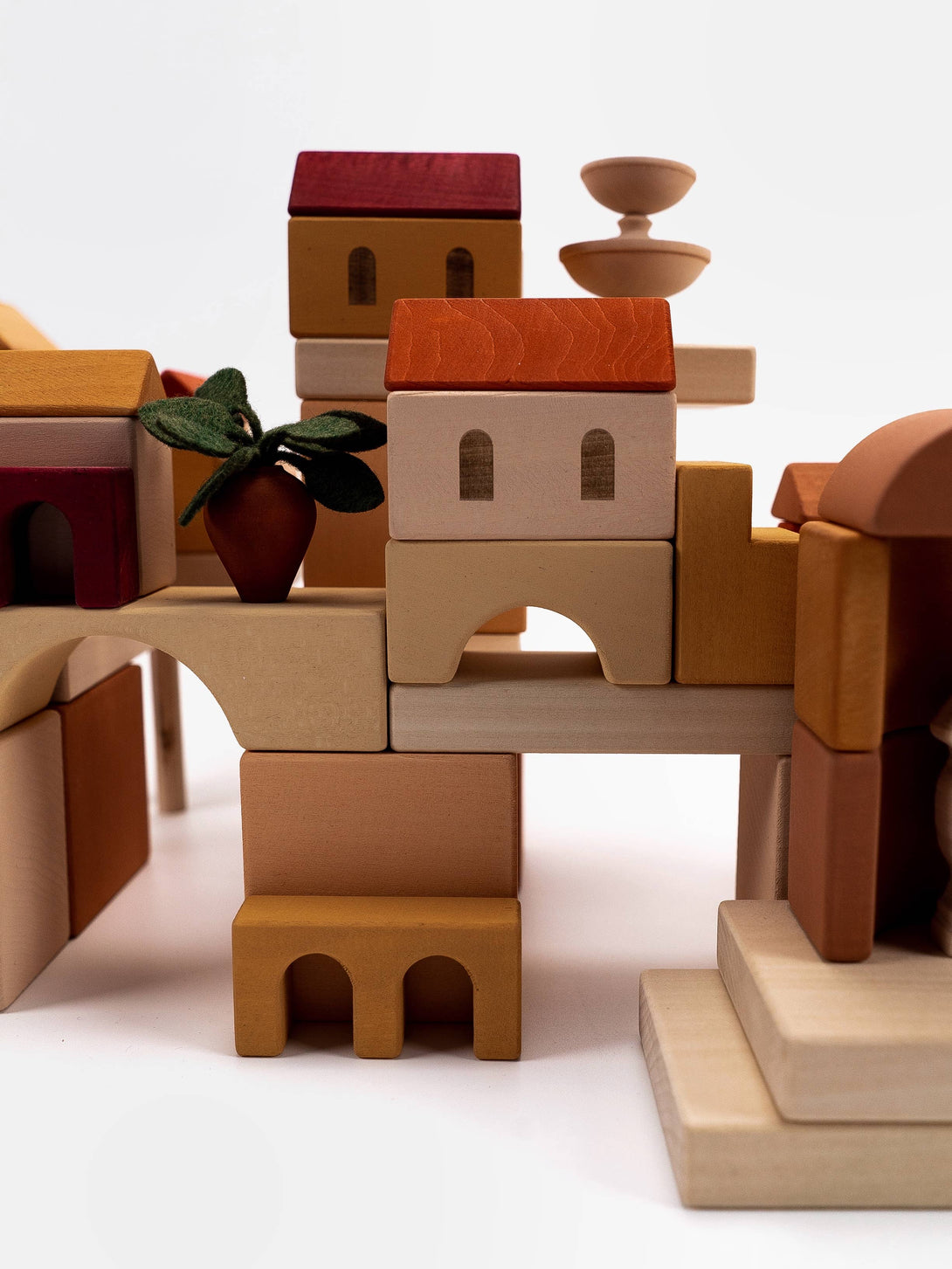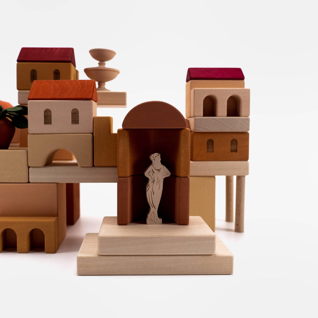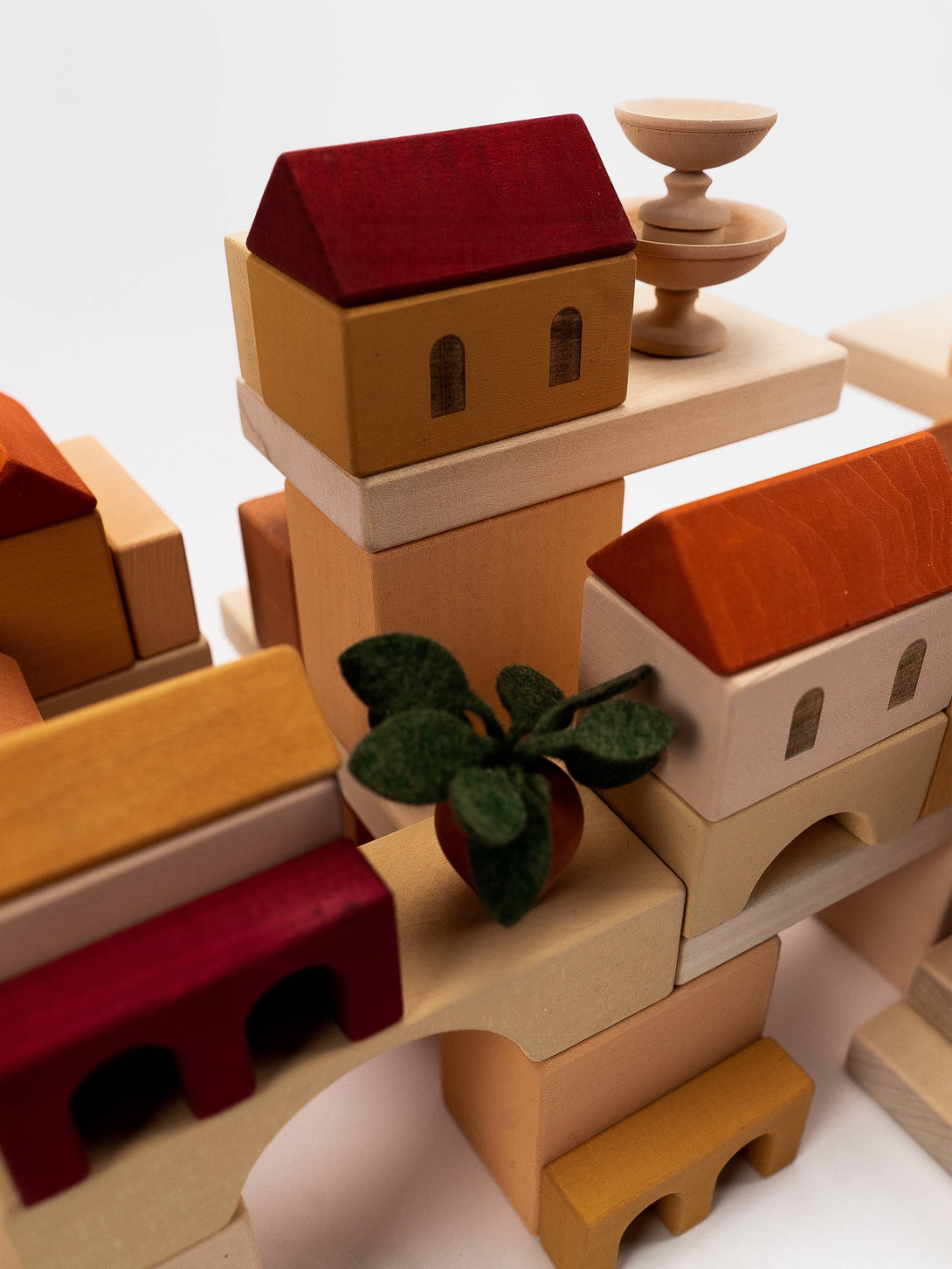 The set is dedicated to Italy - the country of sun, beauty and art. We created a city - a small personification of Italy, which you can feel to the touch and fill your home with the atmosphere of picturesque streets and bright colors. The color palette is bright and warm - exactly what you'd see in Italian seaside towns.