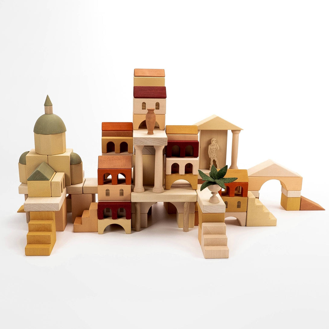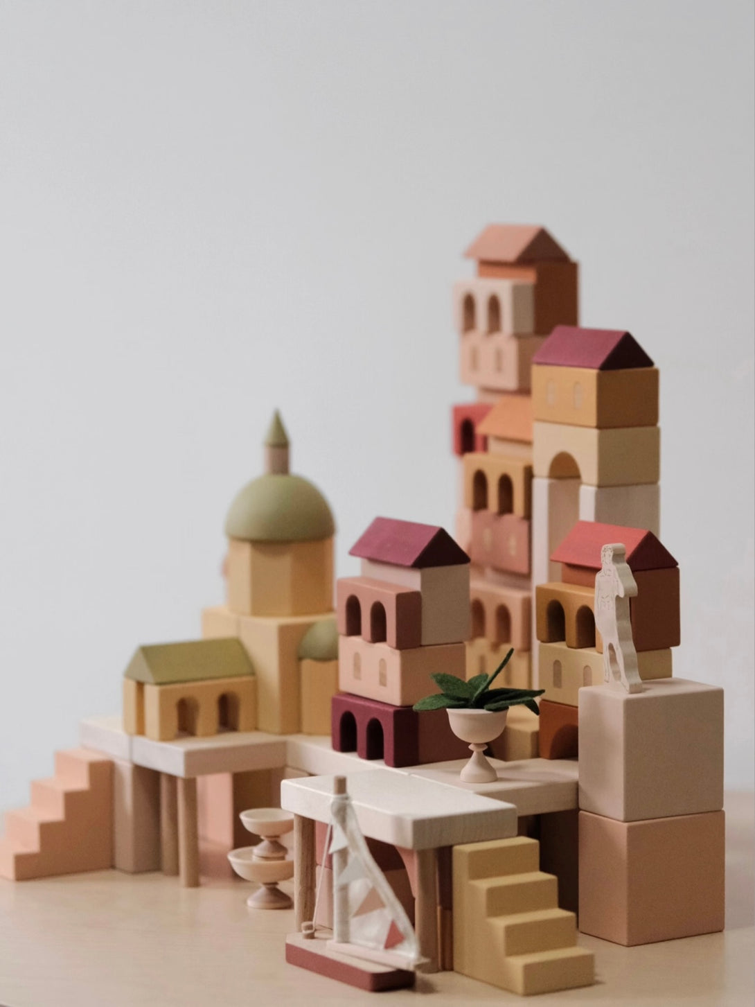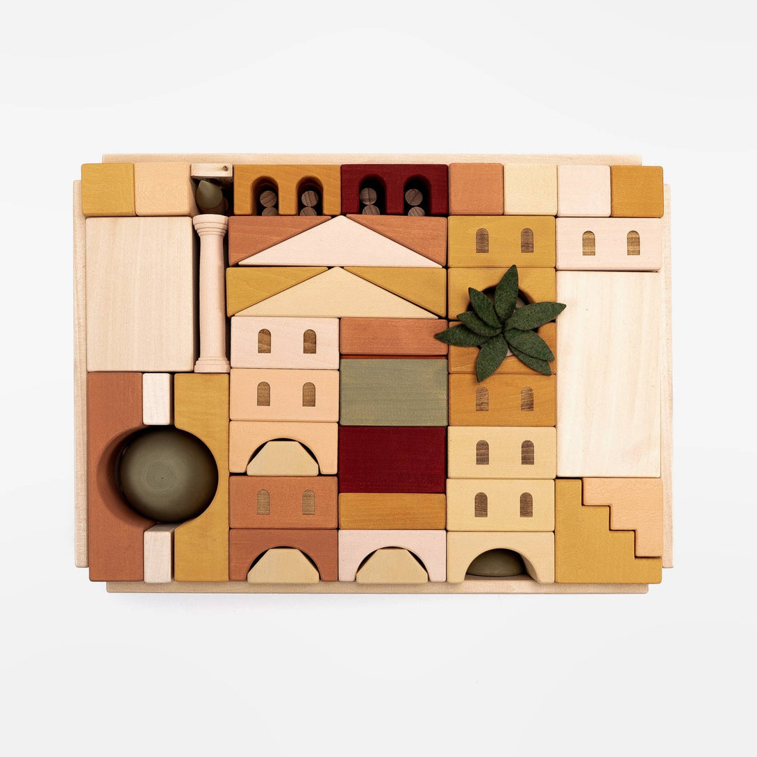 The set is dedicated to Italy - the country of sun, beauty and art. We created a city - a small personification of Italy, which you can feel to the touch and fill your home with the atmosphere of picturesque streets and bright colors. The color palette is bright and warm - exactly what you'd see in Italian seaside towns.