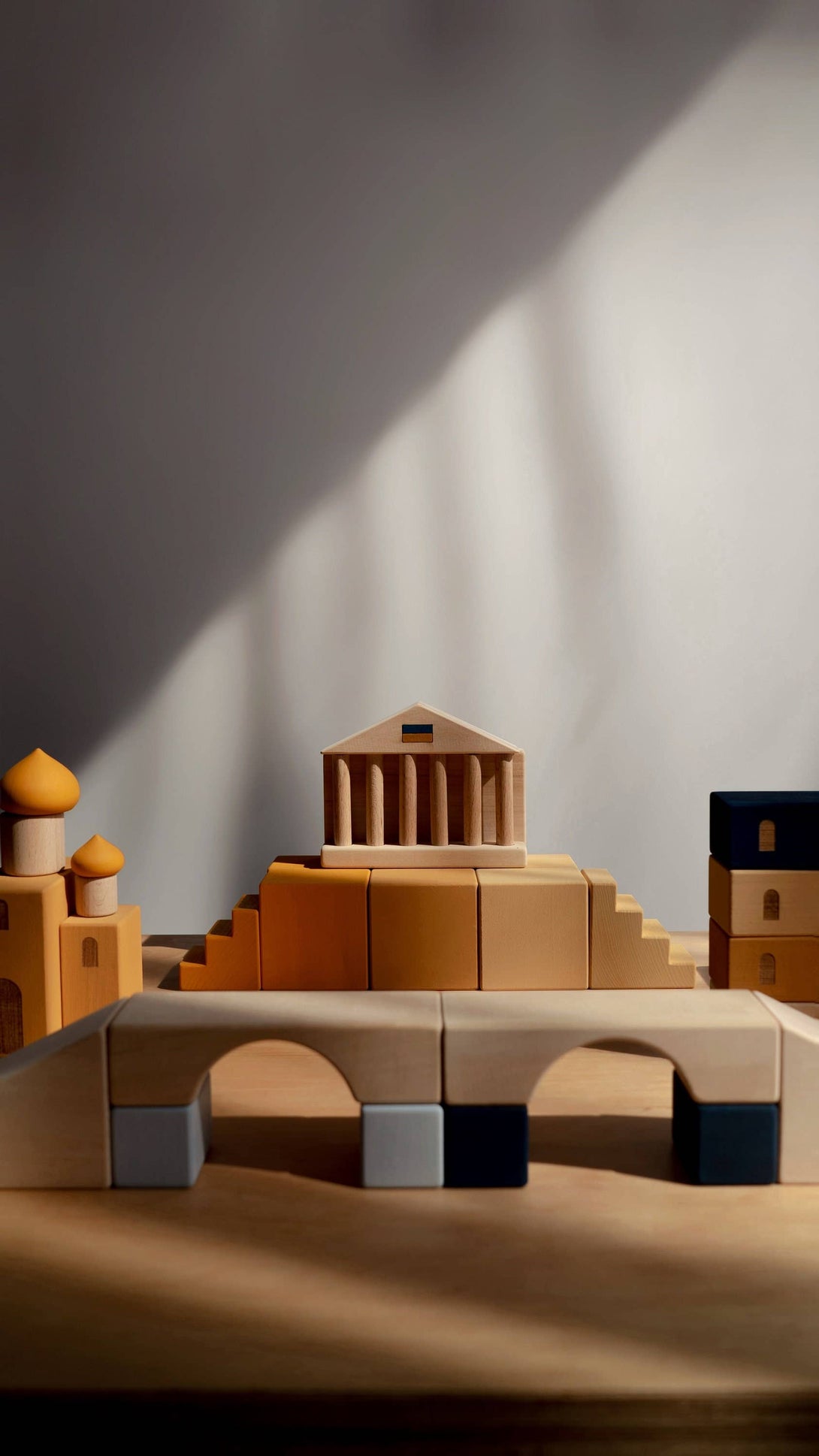 Theater in Mariupol. Bridges in Kyiv. Churches. Houses that were homes to millions of Ukrainians. Everything destroyed. Devastated lives, broken hearts and lost hopes. Being overwhelmed with the pain, we have embodied it in this set.