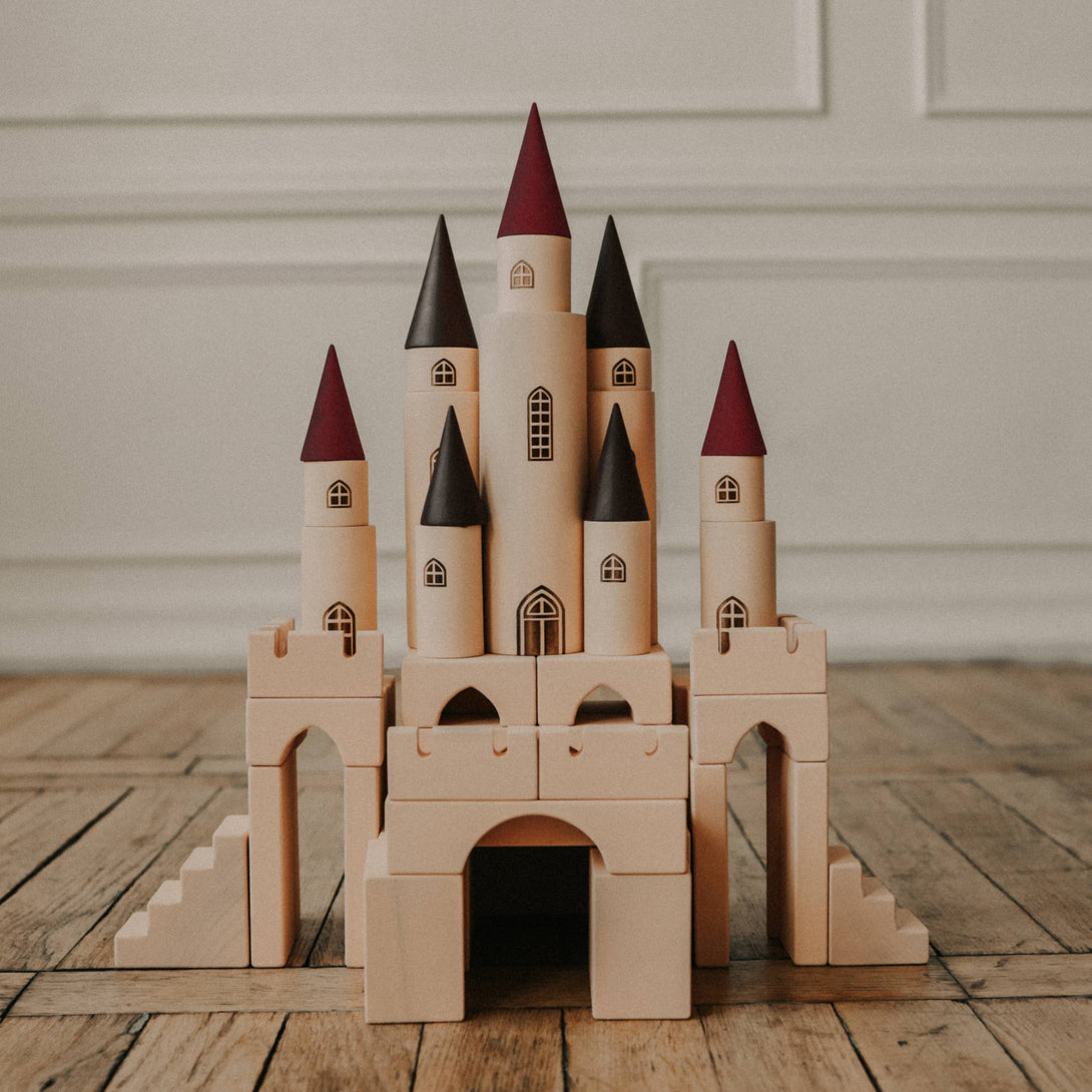 The parts can be combined with each other in various combinations to build a fairy-tale castle. All parts are covered with water-based paints that do not overlap the structure of the tree - all of the same color, except for the cones. All edges are well finished and pleasant to the touch. Packaged in a gold-plated gift box.