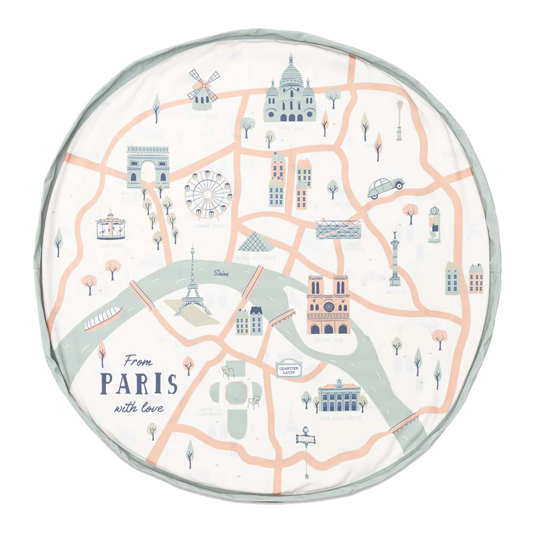 Play Mat and Toy Storage Bag - Durable Floor Activity Organizer Mat 140CM (PARIS MAP)