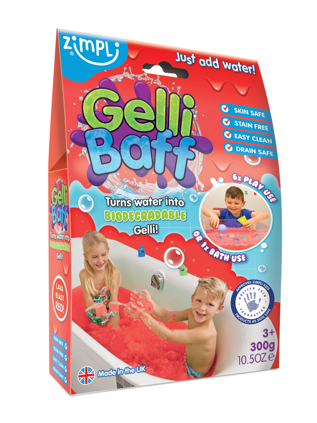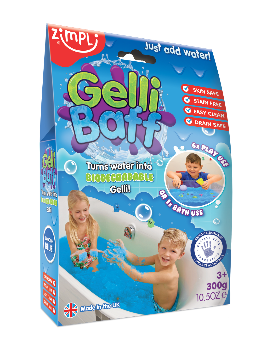 Gelli Baff is a totally unique, fun, bathtime product that lets you turn water into goo and back again! By adding Gelli Baff powder to water, you create a colourful goo. By simply adding a second ‘dissolver’ powder, the goo turns back to coloured water that can be drained away safely and easily.